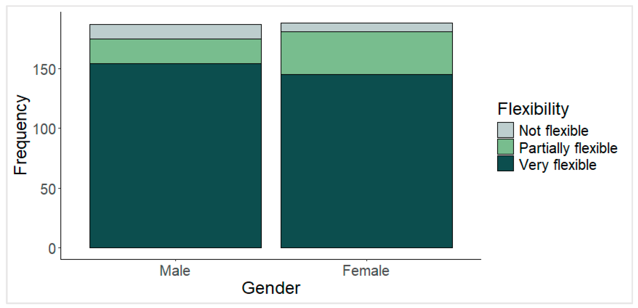Figure 1. Distribution of individuals per gender and stacked bars for perceived flexibility.