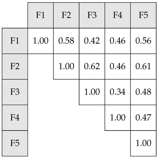 Figure 5 shows the correlation matrix between the five extracted factors. The strongest associations were observed between economic and personal dimensions (), as well as between social and stereotype-related factors (). These patterns indicate that structural conditions and cultural perceptions often operate jointly to influence student outcomes.