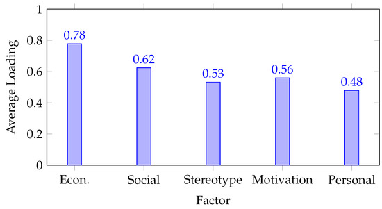 Average factor loadings by thematic dimension. Economic barriers showed the strongest influence.
