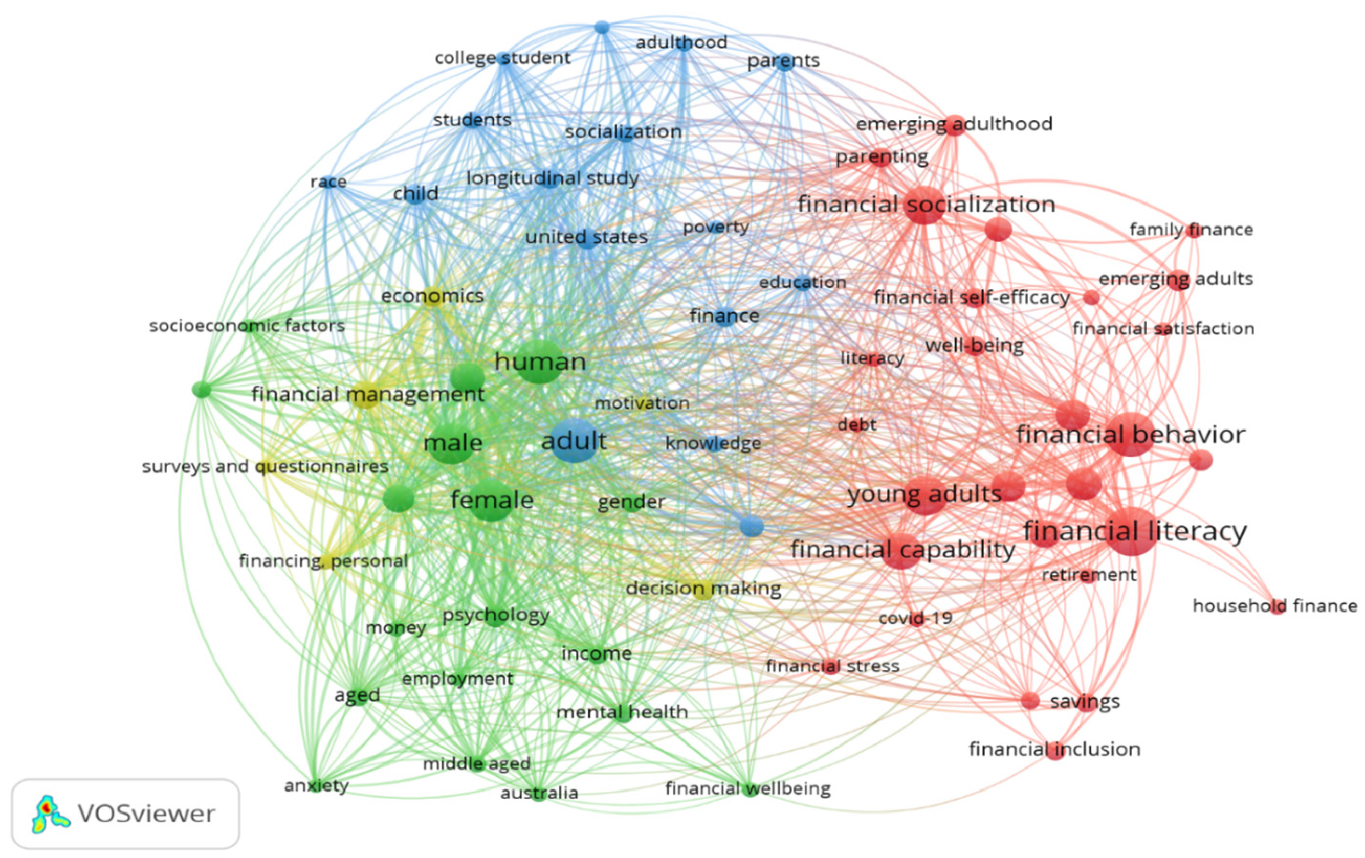 | RED Financial literacy, financial capability, and financial behavior among young adults | Financial behavior; financial literacy; financial capability; financial education; financial knowledge; young adults; financial satisfaction; financial attitude; family finance; emerging adulthood, parenting; financial socialization; financial self-efficacy; well-being; debt; financial stress, retirement; household; financial inclusion; COVID-19; savings; financial stress; household finance; savings; young adults | [47,48,49,50,52,53,68,75] |
