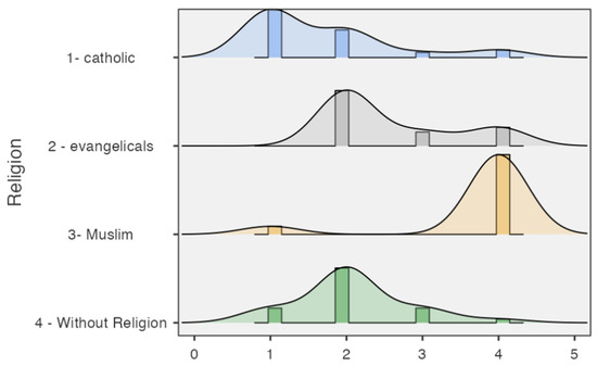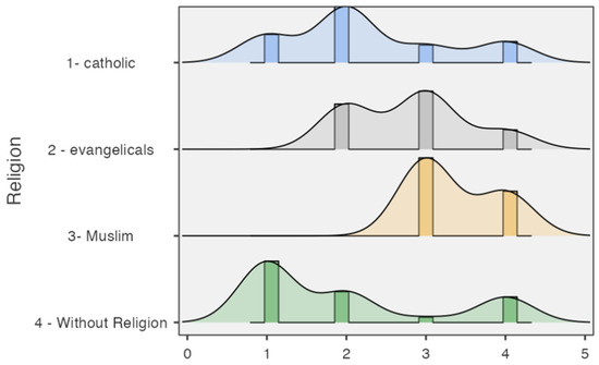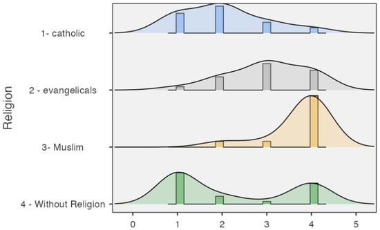 We used the Kruskal–Wallis Test to see if there were differences in the average opinions among the four religious groups. You can find specifics in Table 3 and Figure 1, Figure 2 and Figure 3.