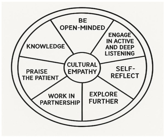 Other Delphi studies, such as those by Castro, Dahlin-Ivanoff, and Mårtensson [18] and Farokhzadian et al. [19], discussed knowledge, the importance of curiosity, empathy, and shared decision-making. Additionally, some studies emphasized knowledge of other cultures, health beliefs, and practices [12,20,21,22]. Interestingly, while many studies identified empathy as a key competency for working with diversity, only one Delphi study explicitly used the concept of “cultural empathy,” defined as showing understanding of the patient’s cultural beliefs, practices, and perspectives. In our study, medical students regarded cultural empathy as equally important as empathy. This likely resulted from their active participation in diversity activities, which prompted group discussions on culture and health beliefs, followed by interactions with simulated patients expressing their cultural views on health management. Thus, medical students recognized the distinct importance of showing empathy for a patient’s culture, separate from empathy for their feelings.