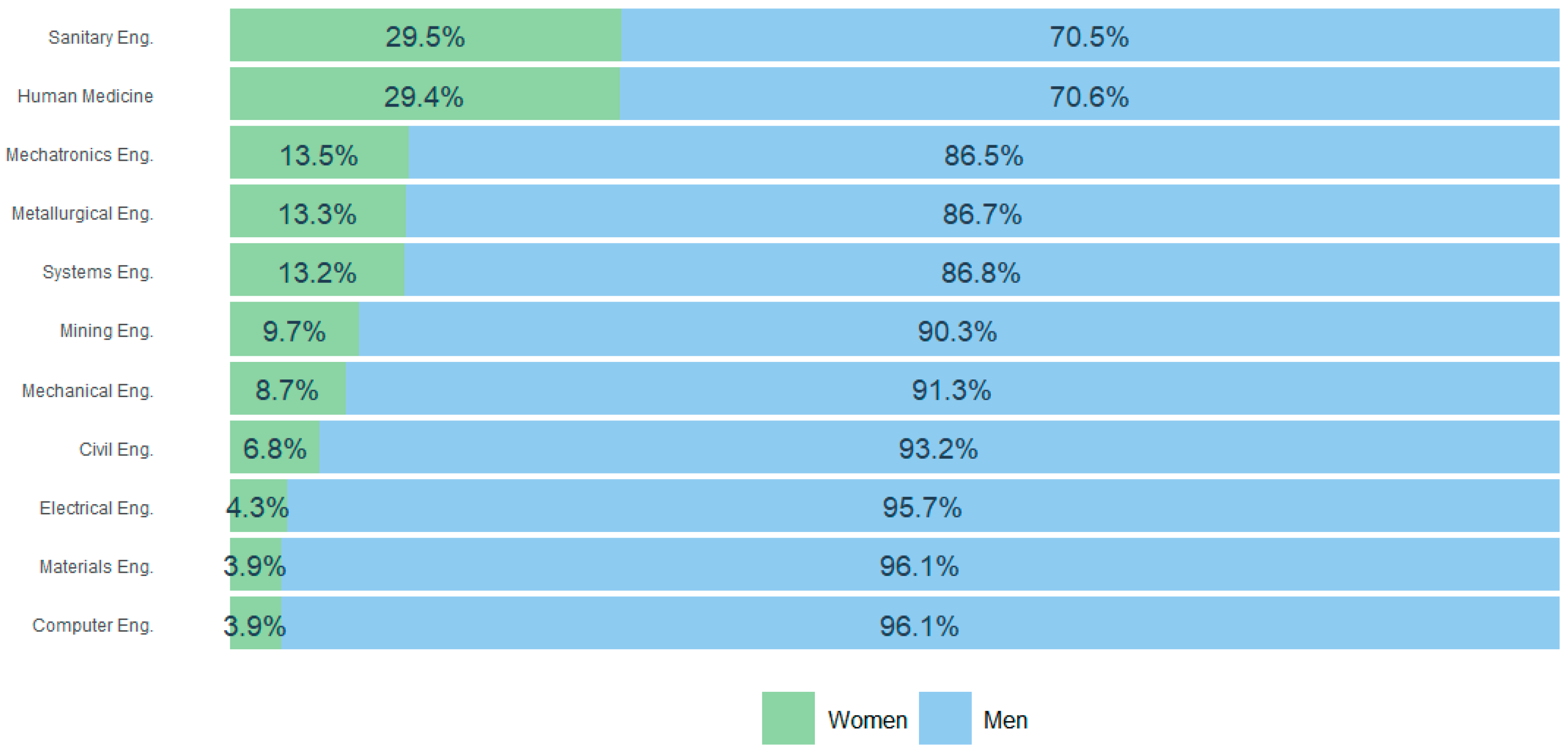 - Contreras-Ortiz, S.; Villa-Ramirez, J.L.; Osorio del Valle, C.; Caicedo, V.V. Participation of Women in STEM Higher Education Programs in Latin America: The Issue of Inequality. In Proceedings of the 18th LACCEI International Multi-Conference for Engineering, Education, and Technology: “Engineering, Integration, and Alliances for a Sustainable Development” “Hemispheric Cooperation for Competitiveness and Prosperity on a Knowledge-Based Economy”, Virtual, 27–31 July 2020. [Google Scholar]