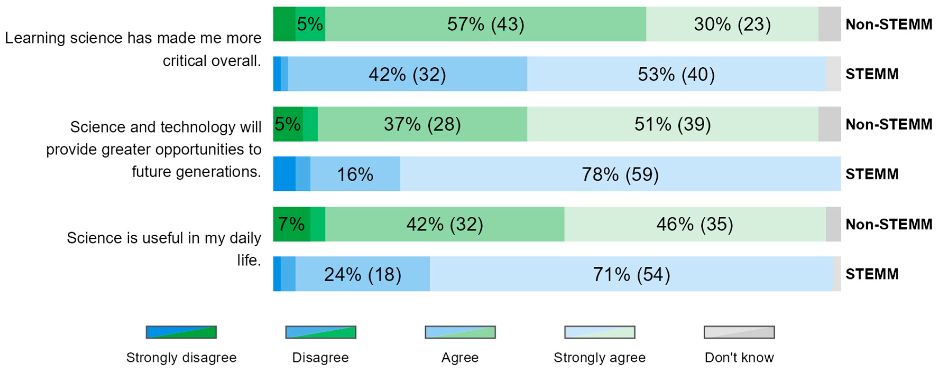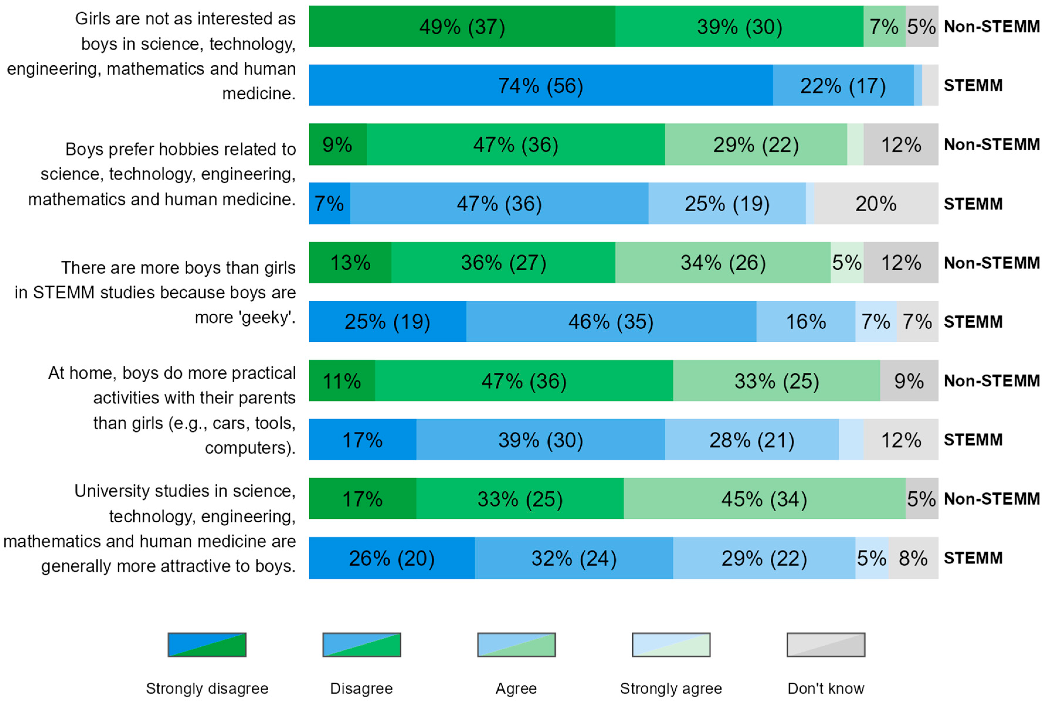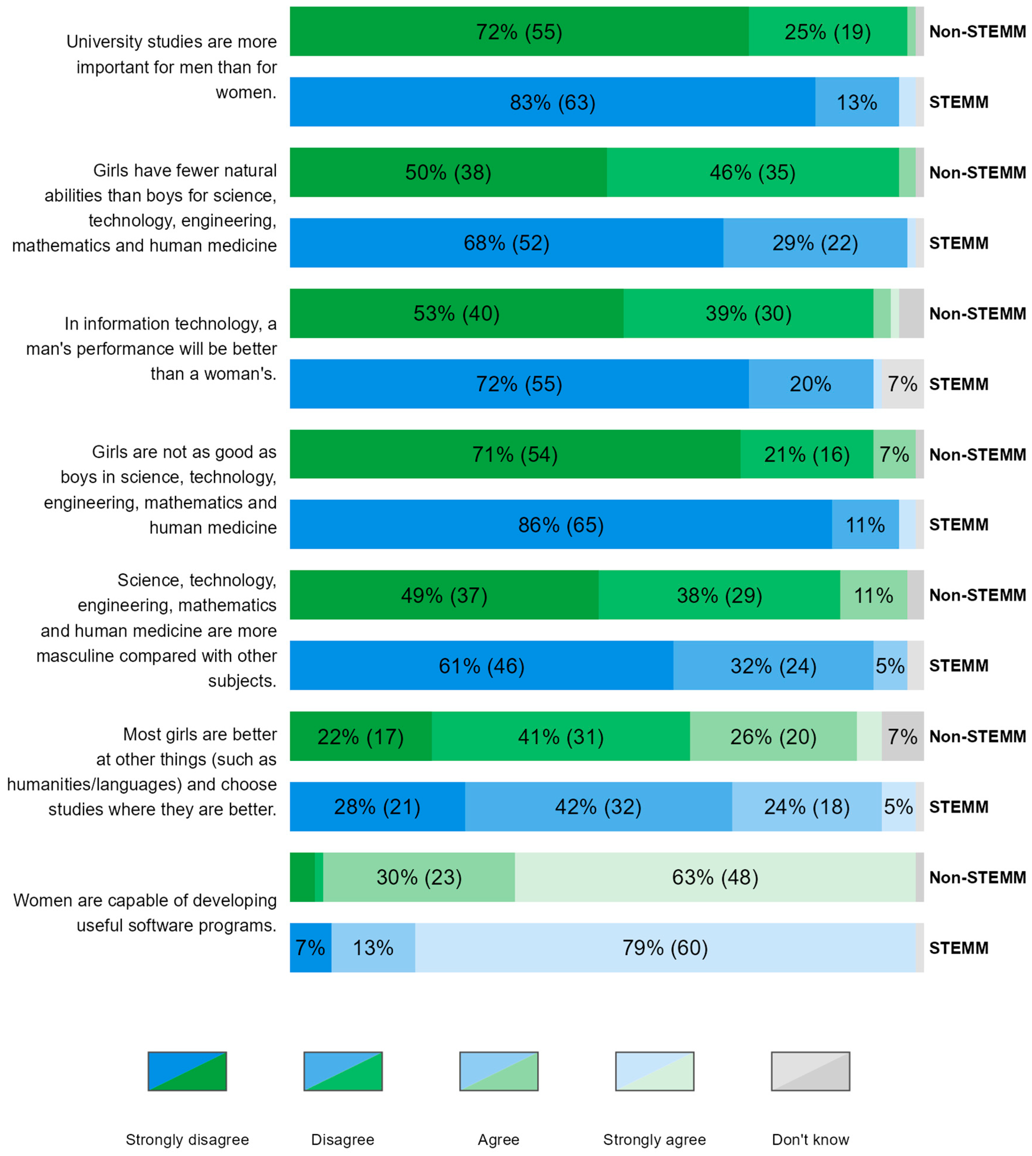 - Attitudinal Factors (24 items): This section measured perceptions on stereotypes, gender roles, and the value of science using a 5-point response scale (ranging from 1 = Totally disagree to 4 = Totally agree, with an option for 5 = Don’t know).