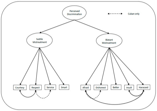 Second, drawing on Krieger et al.’s (2005:1588) still-relevant observation that more research should employ “validated multi-item self-report measures” of discrimination [10], we compare reports of perceived discrimination across Latino ethnic groups using the nine items of the Everyday Discrimination Scale [11]. To date, only a limited number of studies have applied advanced methodologies, such as structural equation modeling, to examine discrimination among individual Latino groups, and even fewer have directly contrasted group differences using this approach [12,13,14]. Such methods yield more reliable and valid estimates of the association between discrimination and health outcomes.