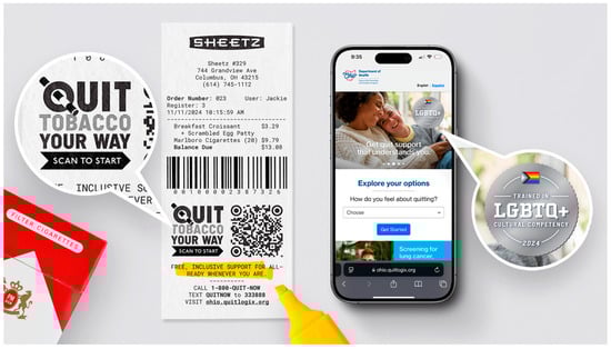 - Patterson, J.G.; McQuoid, J.; Heffner, J.L.; Ye, Q.; Ennis, A.C.; Ganz, O.; Tan, A.S.L. Resonating With Pride: Considerations for Tailoring Tobacco Interventions for LGBTQ+ Communities. Nicotine Tob. Res. 2024, 26, 1438–1441. [Google Scholar] [CrossRef] [PubMed]