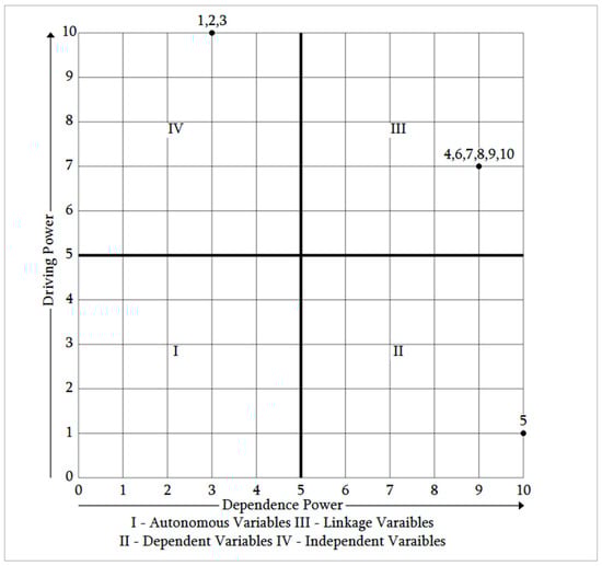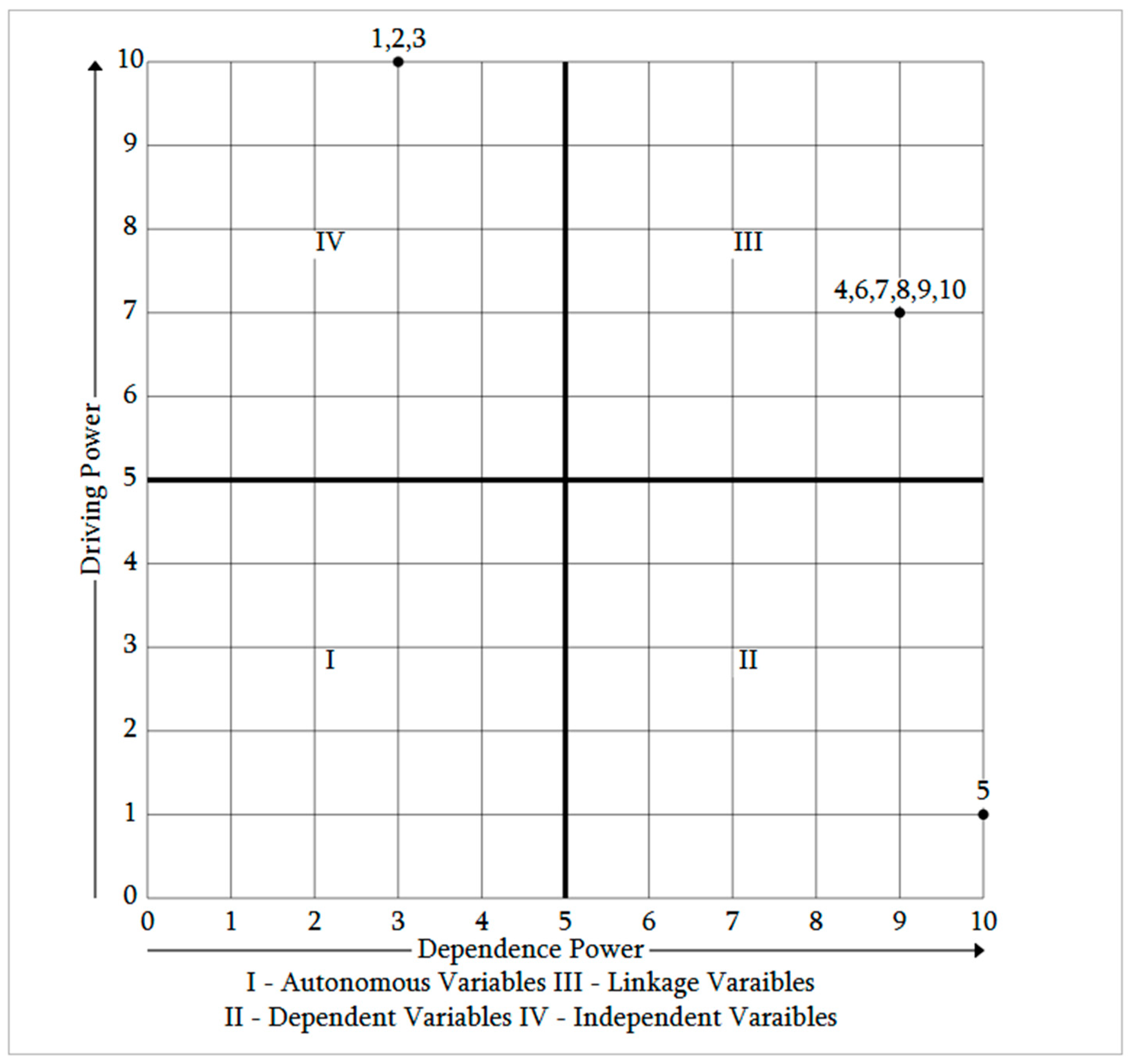 4.2. Stage 2: Identification of the Causal Relationships Among Key Determinants (ISM-MICMAC)