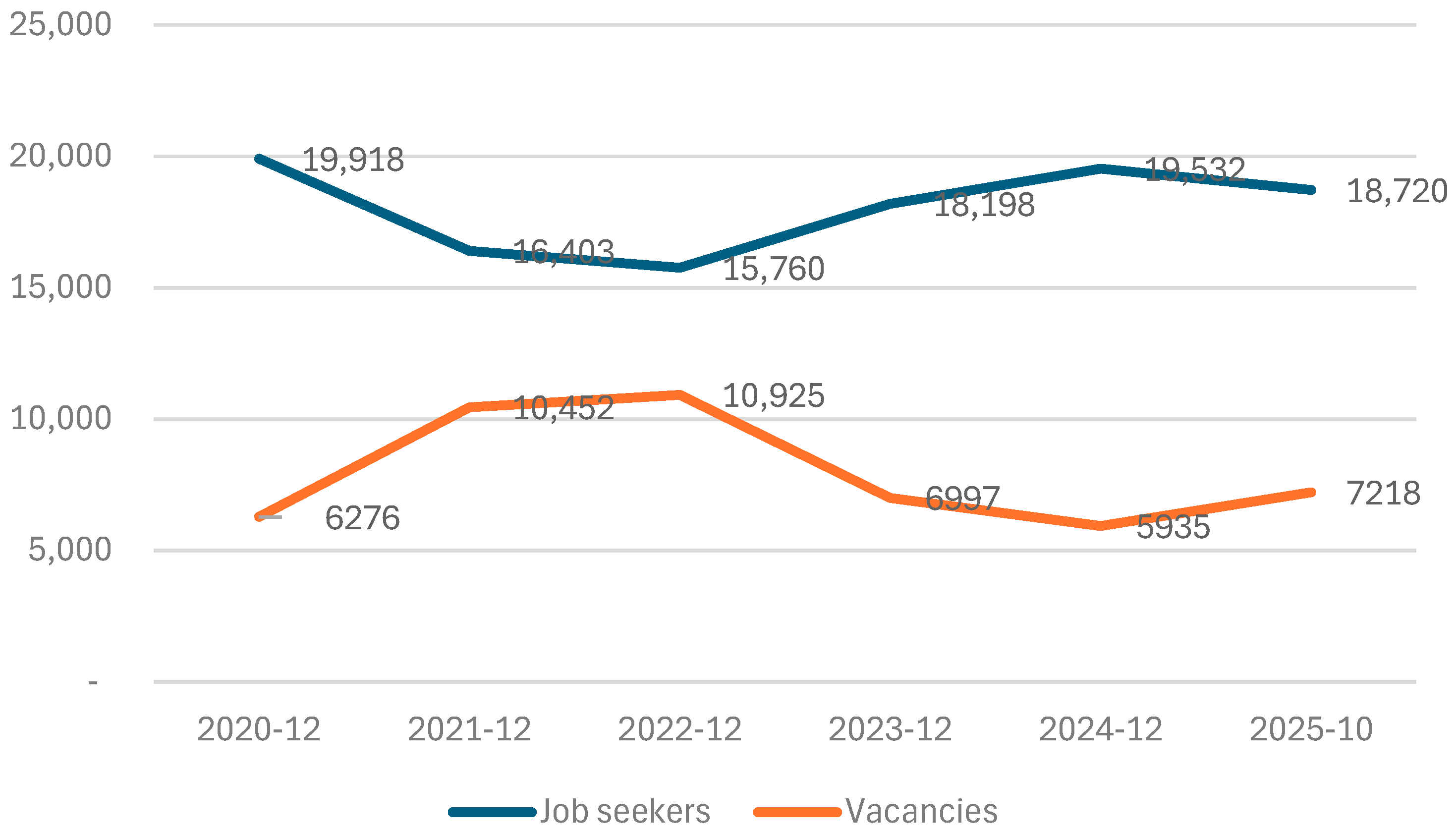 - Luxembourg Government. Évolution du Chômage en Septembre 2025: Rentrée 2025: Davantage de Demandeurs D’emploi et Davantage de Déclarations D’offres D’emploi, Press Release. 20 October 2025. Available online: https://gouvernement.lu/fr/actualites/toutes_actualites/communiques/2025/10-octobre/20-adem-chomage1.html (accessed on 21 October 2025).