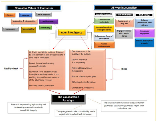 - Broussard, M.; Diakopoulos, N.; Guzman, A.L.; Abebe, R.; Dupagne, M.; Chuan, C.-H. Artificial intelligence and journalism. Journal. Mass Commun. Q. 2019, 96, 673–695. [Google Scholar] [CrossRef]
