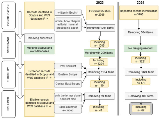 PRISMA model of the selection of the articles in WoS and Scopus. Edited by authors.