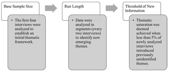 To validate the robustness of the findings, theoretical saturation was determined using Guest et al.’s (2020) method [26]. We quantified saturation based on three key criteria as explained in Figure 1.