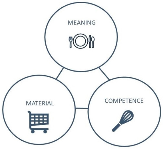 Trying to understand how people eat and why by using a practice–theoretical approach requires first determining what practice(s) to study. Rule et al.’s [10] approach is to analyze what they call a “domain of practices”, rather than an individual social practice. They argue that practices that form a domain have similar meanings, materials and competences, but that they involve actions that are too diverse to consider them a single practice. The example they give is shopping for food, which can consist of activities like ordering online, going to a supermarket or shopping at an open market. Other writers on food and/or food practices, such as Aronsen Torp et al. [20], refer to the three related activities of shopping, preparing and eating. Using slightly different words, Delormier et al. [27] state that family feeding practices include daily food-related activities such as procuring, preparing and consuming food, and also House [31] mentions the intersecting practices of shopping, cooking and eating.