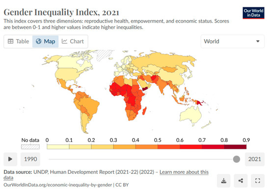 - Our World in Data: Gender Inequality Index. 2021. Available online: https://ourworldindata.org/grapher/gender-inequality-index-from-the-human-development-report (accessed on 24 March 2024).