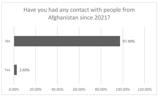 Related to the previous question, the subjects were also asked about any contacts or encounters with Afghan citizens since 2021 (Figure 5).