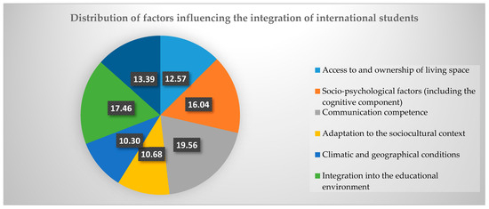 Table 1, we observe that the same categories of factors were identified as having high factorial impacts on the integration of foreign students. For example, communication competence has a weight of 19.56%, integration into the educational environment is evaluated at 17.46%, and the financial situation contributes with 13.39%. This overlap between the results of the clustering and factorial analyses validates the importance of these factors in the integration process.