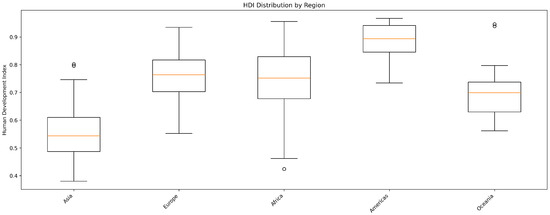 - Regional Clustering and Outliers: While certain regions like Europe show high HDI homogeneity, other regions, particularly Africa, reveal a broader range of HDI values. This dispersion suggests that regional averages may obscure significant internal disparities, making a case for more granular, country-specific approaches.
