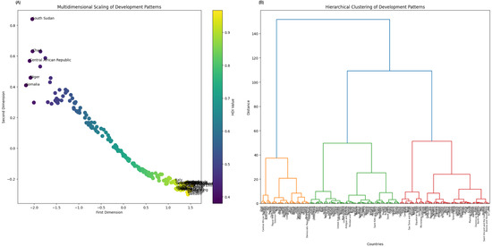All data underlying the results presented in this study are publicly available. The datasets used in this work can be accessed through the following repositories: Human Development Index (HDI) data, covering 193 countries from 1990 to 2022, retrieved from the United Nations Development Programme’s Human Development Reports (http://hdr.undp.org/en/data, accessed on 1 January 2025); population statistics, obtained from the United Nations World Population Prospects (https://population.un.org/wpp/, accessed on 1 January 2025); and geographical classifications, based on ISO 3166 country codes (https://www.iso.org/iso-3166-country-codes.html, accessed on 1 January 2025). Additional processed data and interactive visualizations supporting our findings are publicly available: interactive circle packing visualization, representing global population distribution (2023) on the Flourish platform (https://public.flourish.studio/visualisation/20110969/, accessed on 1 January 2025); and interactive radial dendrogram visualization, illustrating hierarchical clustering of the Human Development Index (HDI) (2022) on Flourish (https://public.flourish.studio/visualisation/20112689/, accessed on 1 January 2025). All other relevant data are provided within the manuscript. The visualizations and their underlying data will be maintained at the above links with unrestricted public access.