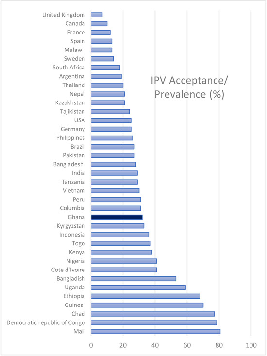 Male IPV against women acceptance/prevalence rate (%) by country level.