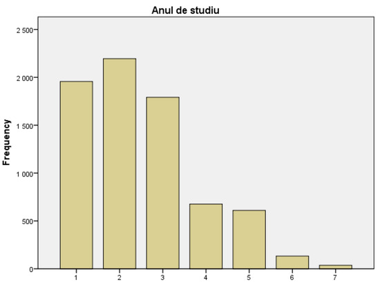 The research design used in this study is descriptive and quantitative, focusing on students enrolled in 19 of the universities in Romania during the specified period 2021–2023. A convenience sample [46] is used, which is considered appropriate for exploratory studies or studies focusing on perceptions, attitudes, and behaviors, where the goal is to understand trends rather than to provide an exact estimation of a general population. The diversity of universities ensures a national distribution, and the large sample size (N = 7402) validates relevant conclusions regarding students’ perceptions.