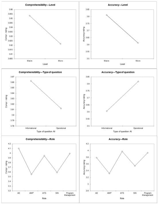 - The regional policy staff (role-AMP) exhibited the strongest negative impact on both dimensions (−0.442 for the comprehensibility and −0.615 for the accuracy), confirming that this group tended to provide the most critical evaluations of the AI responses.