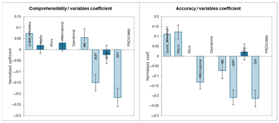 To better understand the impact of key variables on the quality of AI-generated responses, we applied an Analysis of Covariance (ANCOVA). Specifically, we estimated two separate multiple regression models: one focused on the comprehensibility and the other on the accuracy. These models allowed us to quantify how the characteristics of the prompt and the evaluator’s professional profile affected the perceived quality of the outputs: