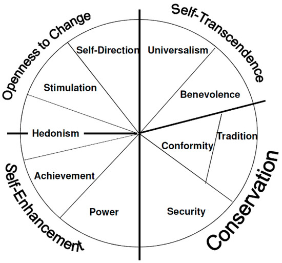 Theoretical model of relations among ten motivational types of values [27] (p. 9).