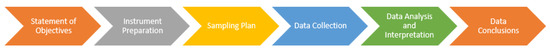 Following Cohen et al. [29], this research adheres to six key stages in the survey process, adapted from Bryman’s [33] model. The first stage involves defining the research objectives and preparing the data collection instrument. This is followed by sampling planning, data collection, and finally, data analysis and interpretation. For more information, see Figure 1.
