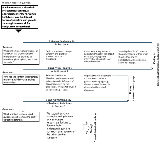 - In Section 6, we employ historical inquiry methods and techniques, drawing on insights from prominent historians, philosophers, and urbanists, to answer the final question: What practical strategies and guidance can be offered to early-career researchers? Accordingly, to achieve our purpose, we suggest practical strategies and advice for early-career researchers looking to deepen their understanding of the context in their reviews of the urban studies literature).