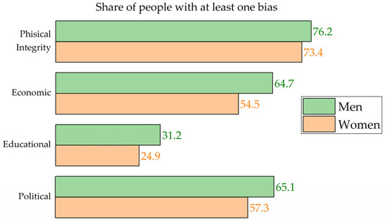 A possible explanation for this situation can be found in the Gender Social Norms Index, which looks into men’s biases towards women and women’s self-biases in four areas: the political, educational, economic and physical integrity area. The latest available report has found that almost 90% of people have at least one gender-related bias and that they are found among both men and women and transcend development levels of the countries of origin and the socio-economic and education level of those interviewed, which is especially concerning considering that gender inequality tends to be higher in countries with greater gender bias [59].
