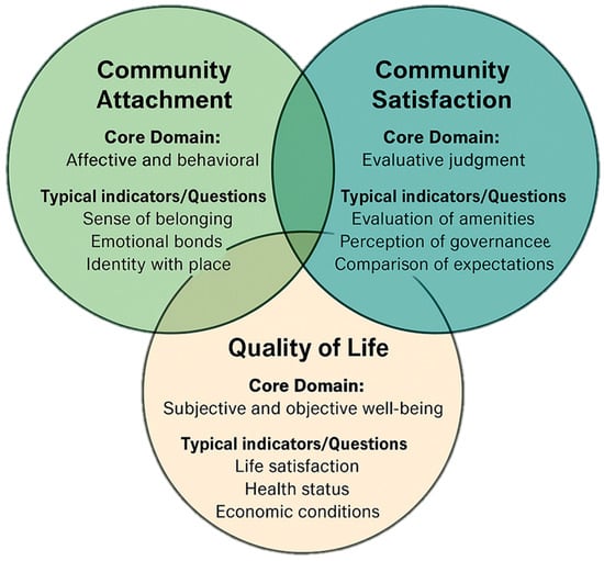 Although not restricted to a specific discipline, our selection and interpretation of terms and sources reflect a sociological orientation. We prioritized sources that addressed conceptual definitions, measurement approaches, and theoretical debates, drawing from sociology, geography, psychology, and related fields. This review of “community attachment,” “community satisfaction,” and “QoL” explores their meanings, uses, and measurement methods, aiming to serve as a conceptual resource for community researchers seeking to better navigate and apply these widely used but often inconsistently defined terms. It contributes to both theory and practice by clarifying distinctions and overlap, guiding future operationalization, and encouraging theoretical precision in community-based research across disciplines.