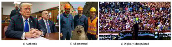 The three images presented to participants included: (a) an authentic, unedited photo (b) an AI generated image and (c) a digitally manipulated photo altered using photo-editing tools. Each image was selected to represent a different type of visual misinformation.