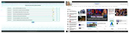 In addition to the self-reported information collected through questionnaires, in recent years, efforts to collect qualitative data have increased, such as the recording of content and news consumers’ attention. Monitoring user attention through eye and mouse tracking offers valuable objective data on how individuals interact with content. Gaze tracking allows researchers to capture points of interest, attention span, and visual paths while reading or viewing content [,,]. Similarly, mouse movement tracking acts as an indicator of cognitive processing and provides clues about attentional focus, navigation points, and potential hesitations []. For Media Studies, these techniques offer objective behavior measurement and allow the study of non-conscious processes that often escape self-report []. Furthermore, in media studies, attention tracking allows for improved content design, understanding patterns of engagement or distraction, and assessing the impact of misleading or offensive content []. By combining subjective (questionnaire) and objective (gaze/mouse) data, researchers can achieve a multimodal analysis of behavior, offering a deeper understanding of the user’s relationship with content, within a rapidly evolving digital environment [].