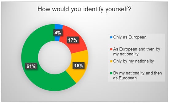 Figure 1). However, 61% prioritize national identity over European identity; 18% don’t feel European, 20% feel European first, and 4% exclusively identify as European (