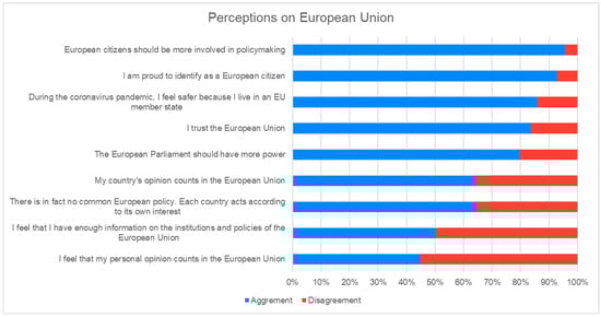 Finally, it is important to acknowledge the limitations of the sampling method. The survey was open and conducted online, allowing broad youth participation but not yielding a representative sample. Future studies should consider stratified sampling or quota-based recruitment to enhance representativeness and enable generalization. Moreover, the data reflect sentiments from mid-2021, after the pandemic but prior to the war in Ukraine and recent shifts in European politics. Hence, these results must be viewed as a temporal snapshot.
