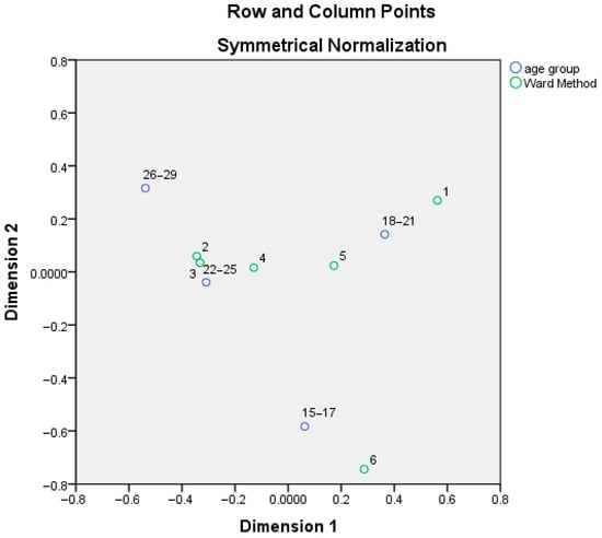 Figure 11). On one end, younger age groups, specifically those aged 15–17 and 18–21, prominently align with clusters 1 (Democracy and Rule of Law), 5 (Digital Transformation), and 6 (Education and Health). In contrast, the slightly older cohorts, those aged 22–25 and 26–29, are closely associated with clusters 2 (Climate), 3 (Migration), and 4 (Economy, Jobs, Social Justice).