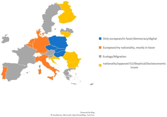 Finally, the comparative analysis, employing advanced analytical tools, revealed a clear connection between the attitudes towards the EU, the way one identifies oneself as European or not, and the issues of concern. The issues correspond to different levels of feelings and attitudes towards the EU, and, on a cross-national level, this study reveals four distinct groups of behavior detected in specific geographical areas of coherent characteristics.