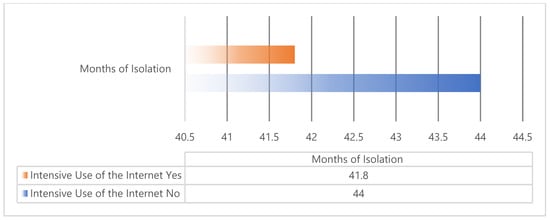 Internet Use by Months of Isolation. Cramer’s V: 0.433. Phi: 0.451. p-Value: 0.04.