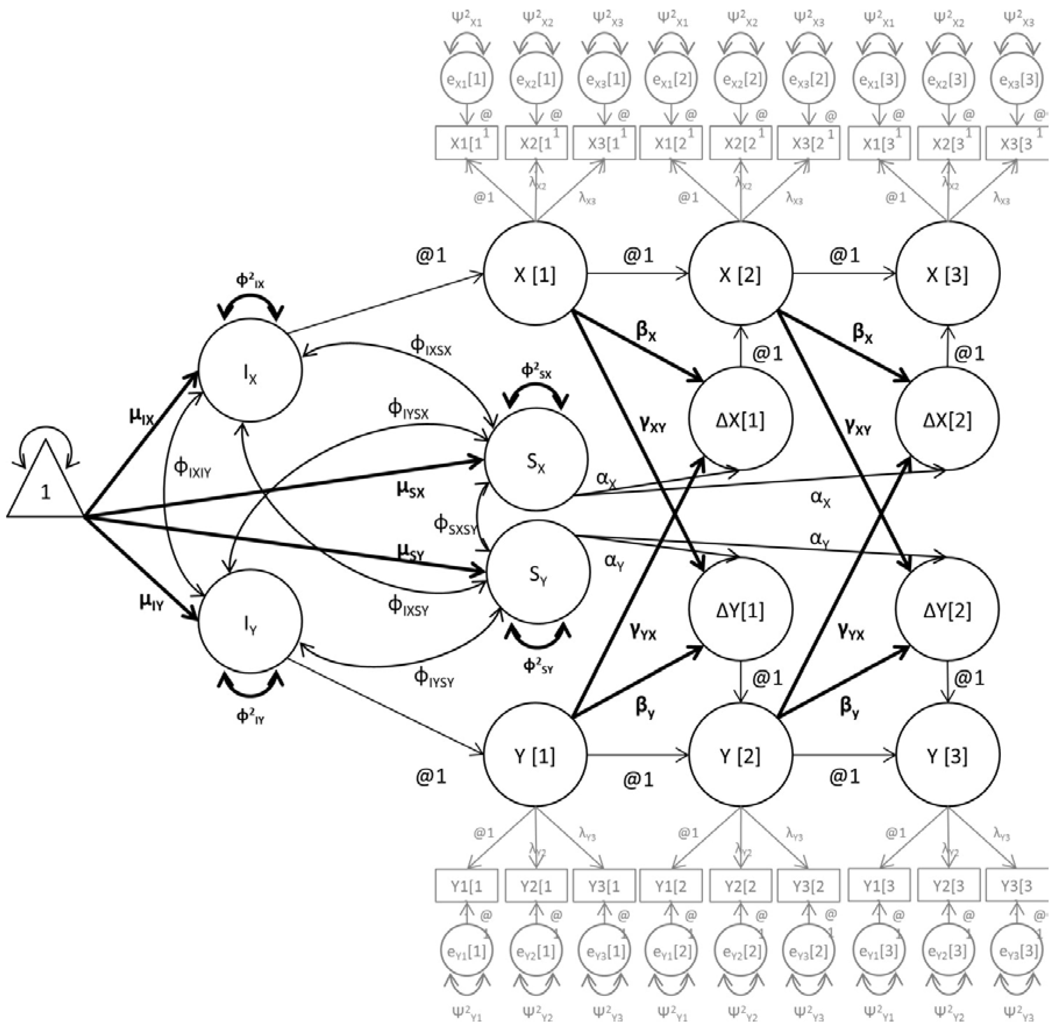 As indicated above, we analyzed the data from this study using Latent Difference Score (LDS) structural equation modeling programmed in Mplus 7.1 [89]. The key elements of an LDS approach are the variables’ latent difference factors, which specify the variable’s change score at each time point (see for instance [92,93]). Unique in the LDS approach is that this change score consists of two components: