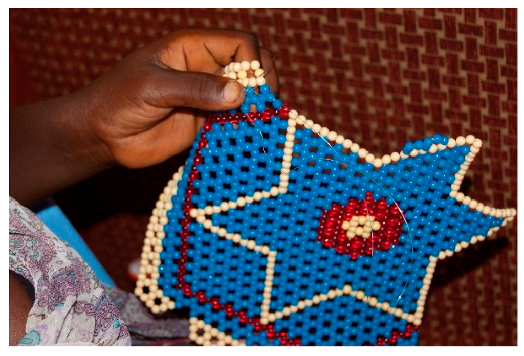 Chicago/Turabian StyleDe Coster, Jori, Eric Metho Nkayilu, and Patrick Devlieger. 2016. "Beadwork and the Plasticity of Disability: (Un)Making Bodily Difference, Gender and Apprenticeship in Kinshasa, DR Congo" Societies 6, no. 2: 11. https://doi.org/10.3390/soc6020011
