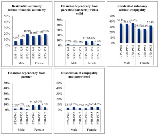 | Left parental home before starting a cohabiting relationship | Residential autonomy without cohabitation |