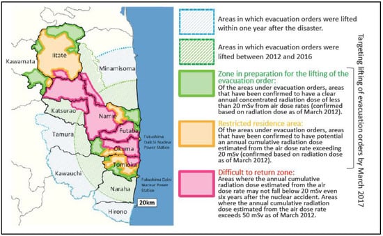 - Lifting Fukushima evacuation orders. The Japan Times. 3 April 2017. Available online: http://www.japantimes.co.jp/opinion/2017/04/03/editorials/lifting-fukushima-evacuation-orders/#.WRFV-1L5zfY (accessed on 19 December 2017).