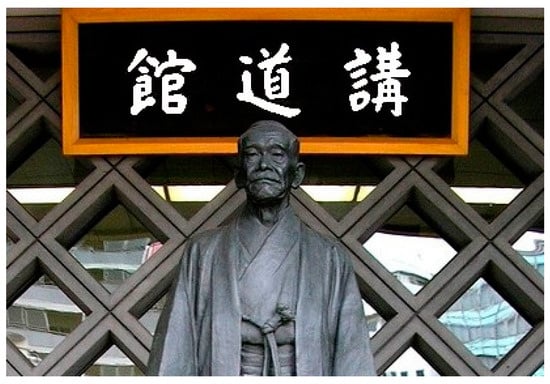 “Judo—more than a sport” is a phrase that is included as part of the logo that identifies the European Judo Union. This is not the motto of an advertising campaign or an image strategy but responds to the cultural legacy of Judo, created in 1882 by Jigoro Kano (Figure 1). Originally, Judo was not conceived as a sport but as an educational instrument with a high content in values, which would serve as a tool for the integral education of people, with which to contribute to the improvement and benefit of society: “For the true benefit of oneself, one must also take into consideration the benefit of society. The greatest prosperity of oneself can be achieved through service to humanity” [17] (p. 8). With this double perspective, Jigoro Kano distinguished between “kyogi” or judo in a limited sense, practiced with the sole objective of physical improvement and a better combat technique, and “kogi”, which refers to Judo in a broad sense, focused on the integral education of people, and, through this, the improvement of society.