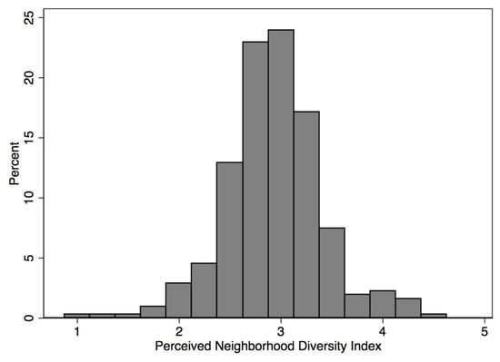 A final explanation for our finding about the positive effects of diversity has to do with our measure of heterogeneity. We focused on the context where people reside—their neighborhoods—where opportunities for inter-group contact may be more meaningful and perceptual, and where the relationship between diversity and attitudes may vary from larger-scale environments like cities, regions, or countries. Another key distinction is that we measured diversity as perceptions about the racial/ethnic composition of the neighborhoods of respondents, rather than using objective measures. Because of this, we may have been able to tap into people’s real everyday experiences living with diversity [39,68]. Some of the distinctions highlighted above may help explain why previous results have been mixed.