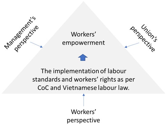 The term ‘empowerment’ implies a transfer or acquisition of power [31,39,40,41], or the process of awareness and capacity-building, which increases the participation and decision-making power of individuals or groups [42]. Empowerment is necessary to enable individuals to act according to their self-determination. According to Giddens [43], the notion of agency refers to the ability of individuals to “act otherwise”, the autonomy, self-determination and self-direction, participation, mobilisation and self-confidence [32]. This means workers can be active agents with the ability to make things happen through their own actions rather than quietly accepting the conditions imposed by management. Some have argued that workers in the global supply chain can be agents of power and change even in a constrained environment and with restricted choices [5,44].