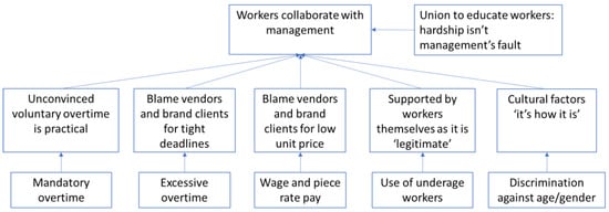Non-compliance and tactical deception are not unexpected as previous studies have reported many deception tactics used by suppliers to pass clients’ audits e.g., [20,25,86]. However, in contrary to our existing knowledge that workers are often being forced to lie to auditors to avoid being punished by the management, findings from this study show a high level of collaboration between the workers, union and management in deceiving labour auditors. In the next section, this paper will present various underlying rationales that motivate workers to collaborate with the management to defy their clients’ CoC, the very mechanism meant to protect them.