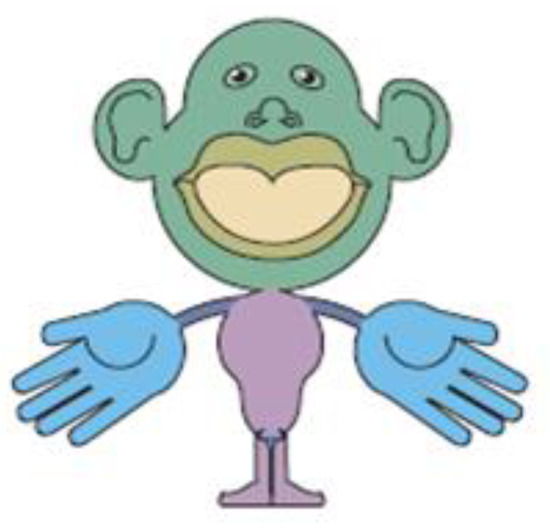 Indeed, as I elaborate in a later section, obesity is amplified as a problem of/for particular groups, such as racialized minorities, (im)migrants, and the poor, who are some of the most vulnerable populations on multiple levels [49,57,67]. I suggest that the biomedical approaches towards obesity result in anxieties about race, class, and in othering, which constructs and essentializes a pathological body that is an obese Other. From an anti-racist perspective, I would argue that the obese Other conjures up an image of an obesity-homunculus in our minds that has a fat, oversized abdomen, and is often representative of the most vulnerable populations—the poor, women, (im)migrants, and racialized people. A homonuculus is often portrayed as a cartoon in medical textbooks and used by neuro-physiologists to portray the somatosensory cortex of the human brain in order to better articulate a cortical map of their knowledge of the primary sensory and motor cortex (Figure 1). The different sizes of this somatosensory homunculus’ body parts are proportional to the density of neurons (receptors) in that region of the human body with an enlarged head, lips, reproductive organ, and hands [70]. Drawing on a parallel concept of the somatosensory homunculus, I suggest that the medicalization of obesity has resulted in the perception of an obesity homunculus in our minds that conjures the images of the Others.
