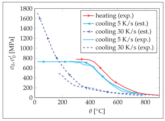Besides the optimzation results from the measurements, Figure 6 also contains the estimated using Equation (5) for both cooling rates, which reproduces the experimentally determined curves very well. The parameters in use are listed in Table 5.