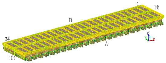 Compared with the simulation results in the reference state (Figure 2 and Figure 3), the metal velocities under anodes A5–A7 increase when the cathode flexes at position A2A3 are cut-off (Figure 8 case 1). The concaved interface becomes worse under anodes A4–A7 and A19–A24, but the concaved interface improves under anodes A8–A17. The metal pad height rises significantly at anodes B1B2, corresponding to the ACD at anodes B1B2, decreasing by 12% (Figure 9 and Figure 10). The interface hump under anodes B5–B19 drops slightly, with the average ACD increasing by 3%, which shows an improvement to the ACD condition in the central area of side B.