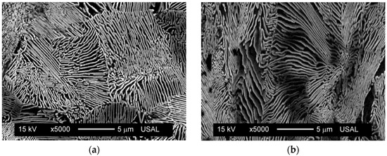 To analyse the BE in high strength steels used in civil engineering, various Bauschinger tests were carried out with the steels corresponding to two stages of the industrial seven-step cold drawing process used for obtaining commercial prestressing steel wires: the initial hot rolled bar not yet subjected to drawing to generate plastic strain (i.e., the drawing induced strain is nil there), which is labelled hereafter as the steel E0, and the steel from the intermediate drawing stage after passing through three drawing dies, which is denoted as the steel E3. The diameters of the wires E0 and E3 were, respectively, dE0 = 11.03 mm and dE3 = 8.21 mm [32]. Accordingly, the drawing induced engineering plastic strain in the steel E3 is (dE02/dE32) − 1 = 0.80, which is rather moderate in comparison with that generated by the industrial drawing process rendering the diameter of manufactured prestressing wire close to 5 mm, which corresponds to the engineering strain of 3.9 (the details of drawing chain behind the present study can be found in the cited paper [32]). Taking into account elevated levels of test load and rather not large wire diameters, undesirable buckling could appear during testing in the compression loading phase. To avoid this, the analysis was focused on the third step of the cold drawing chain after which the drawn wire diameter remains not too small. This wire has a slenderness ratio sufficient to avoid buckling, and in addition, manufacturing induced microstructural changes are rather moderate and induce not too strong anisotropy [32]. The chemical composition of the steel is 0.789% C, 0.681% Mn, 0.210% Si, 0.010% P, 0.008% S, 0.003% Al, 0.218% Cr, 0.061% V [32]. This provides the eutectoid steel wires with pearlitic microstructure (Figure 3).