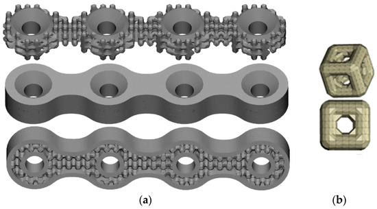 (a) Overall geometry of the fabricated bone fixation plates and (b) unit pore cell used for creating the porous bone fixation plates.